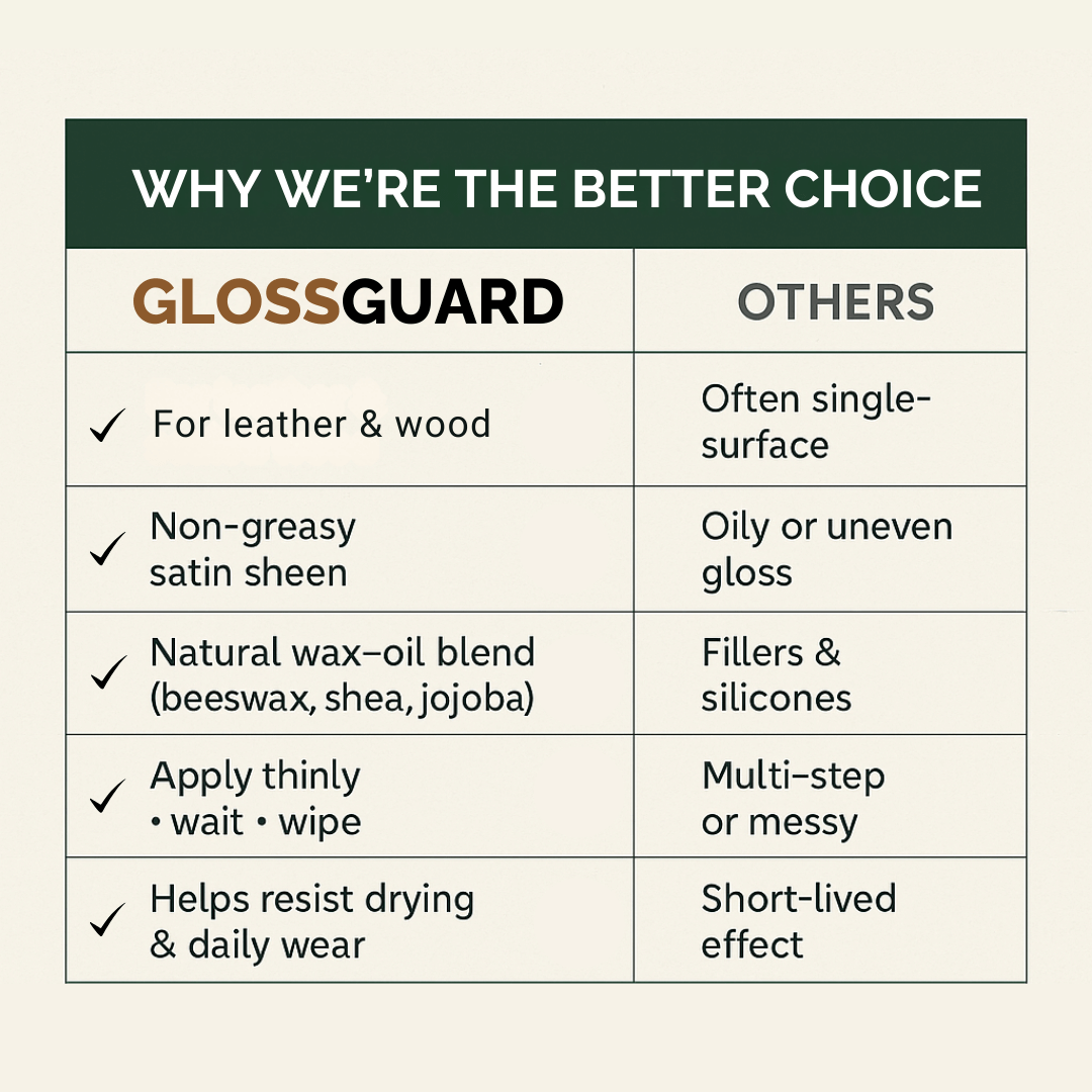Quick routine that restores the look and feel of leather & wood.